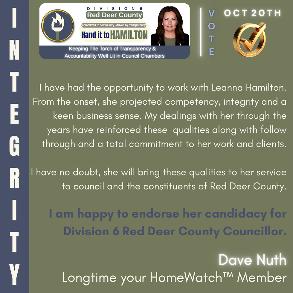I’m deeply honored and humbled by the support I’ve received from residents across Division 6 and beyond. Endorsements and the many votes of confidence reflect the trust our community is placing me to lead with integrity, transparency, and a genuine commitment to serving the people of Red Deer County.